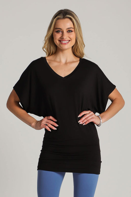 Butterfly Short Sleeve Boat Neck Dolman Top